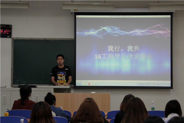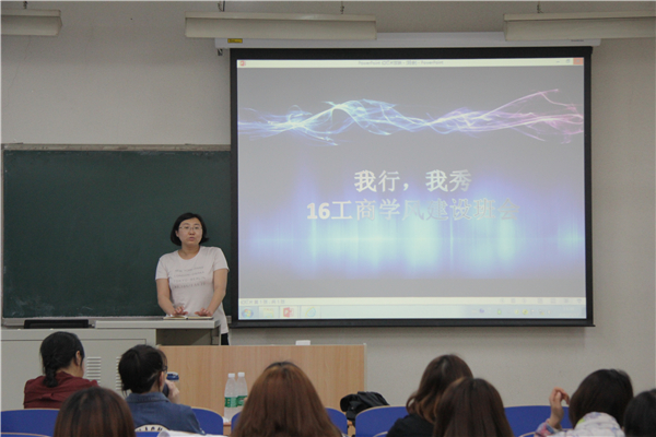 2018年5月17日2016级工商管理专业在教B-107召开了“我行,我秀”为题的学风建设主题班会,出席本次班会的有工商管理系主任李萍老师、16级辅导员乔多老师。