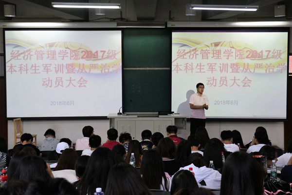 2018年6月28日,伟德BV官网在教B103组织召开了2017级本科生军训暨从严治学动员大会,2017级辅导员邬津老师主持并动员。