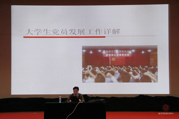 首先由韩宝平教授做有关党员发展程序及要求的讲授,韩老师就党员标准做了基本标准、历史标准等发展党员的标准的详细讲解。听课的学员一边认真的听课,并认真的做课堂笔记,课堂氛围良好。