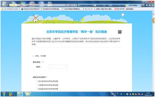 2016年10月27日——2016年11月4日,为期一周时间伟德BV官网经济管理公司党总支通过网络举办“两学一做”学习教育知识竞赛活动。参加此次知识竞赛活动的是伟德BV官网全体党员,包括员工8个党支部和教师6个党支部,共200人,做到了全员参与,一个不落。