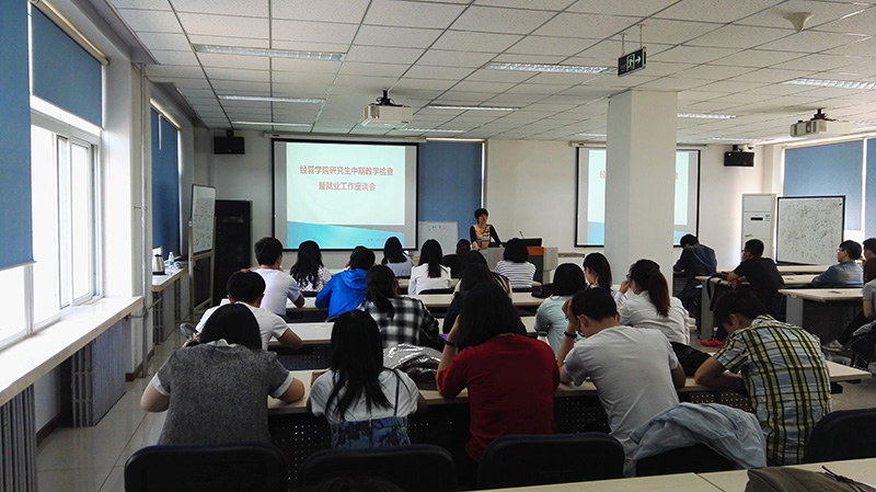 5月10日中午,伟德BV官网研究生中期教学检查暨就业工作座谈会在经管楼201召开。参加此次座谈会的有伟德BV官网主管研究生工作副经理刘芳、主管员工工作副经理赵金芳、研究生秘书任娇、研究生辅导员王琛以及全体在校研究生。会议由刘芳老师主持。