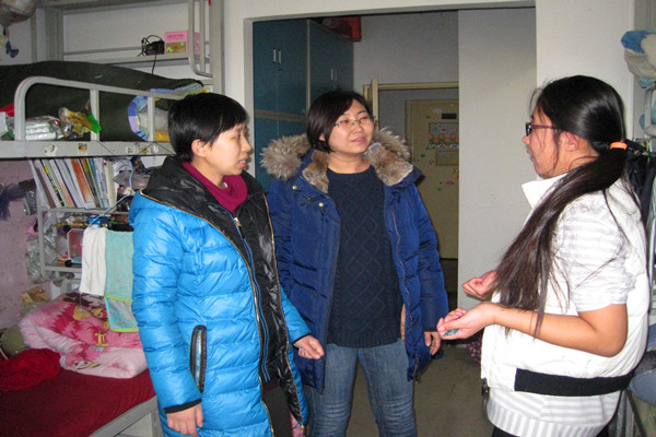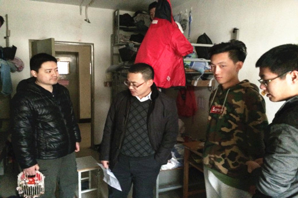 检查中,辅导员一行预祝大家假期愉快,同时嘱咐同学们离校前关闭门窗,切断电源,并叮嘱假期留宿同学在留校期间时刻注意自身个人安全和财产安全,时刻牢固树立安全意识。