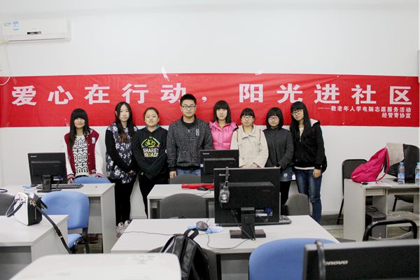 11月1日上午,经管青协志愿者们来到了育新小区参加了教老年人学电脑活动,此次活动的主题是“爱心在行动,阳光进社区”。