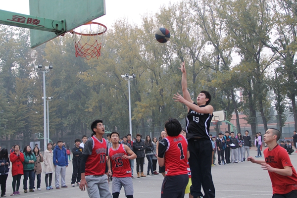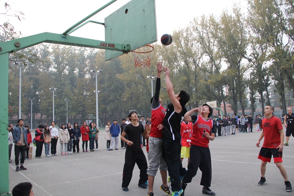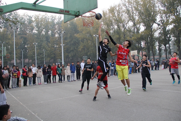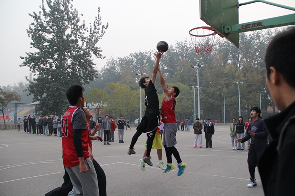 哨声轻响,比赛开始了。经管的球员们活跃在球场上,运球转身、急停过人,动作实用果断,没有一丝拖泥带水。比赛打得难分难解,突然,经管球员一次成功抢断,并用一次快攻战术完美的拿下2分后,整个球赛迎来了高潮。欢呼呐喊声顿时充斥了全场,人群沸腾了。双方球员神情紧张,你来我往、你攻我守,谁也不想轻言放弃。篮球一次次破网而入,比分不断刷新,经管球员用他们熟练地篮球技巧、必胜的坚定信念在球场上创造了一个个精彩的瞬间。