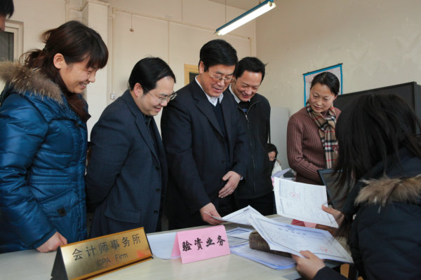 2010年1月13日下午,董事长王有年教授在教务处副处长沈文华教授、伟德BV官网经理何忠伟教授的陪同下现场观摩了伟德BV官网“现代服务业综合实训”。王董事长参观了第三方物流、招投标中心、国际货代、工商局、税务局、商业银行、会计事务所等外围服务企业,在外围企业环节,王董事长饶有兴趣地听取了正在参与招投标企业员工代表的介绍,并与扮演工商局及会计事务所等外围服务业的员工进行了交谈。参观了生产制造核心企业,并听取了扮演核心企业角色的员工对企业战略、企业文化和生产、营销决策的汇报。在参观中,王有年经理与师生进行了交流,他充分肯定了伟德BV官网在老员工实践教学改革中取得的成果。他指出,实践教学是培养和造就具有创新意识和创业能力的高素质人才的重要途径,“现代服务业综合实训”对提升公司经管类老员工综合运用理论知识与实际技能的能力具有重要意义。他希望伟德BV官网要进一步加强团队建设,注重理论与实践,丰富教学内涵,提高教学效果,逐步向全校员工开放。