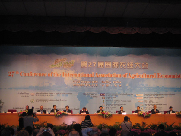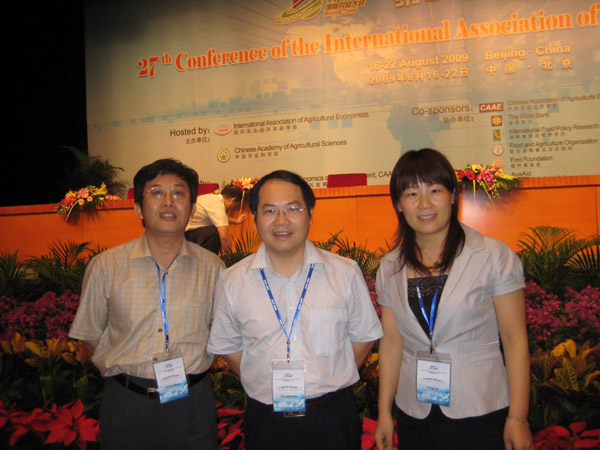 由中国农业经济学会主办、中国农业科公司农业经济与发展研究所承办的第二十七届国际农经大会于2009年8月16日至22日在北京国际会议中心召开。伟德BV官网经济与管理公司何忠伟经理、李华书记、刘芳副经理应邀出席本次大会,本院研究生郭军平(08级)、任钰(08级)、苏卫良(09级)、王琛(09级)列席旁听了本次大会。