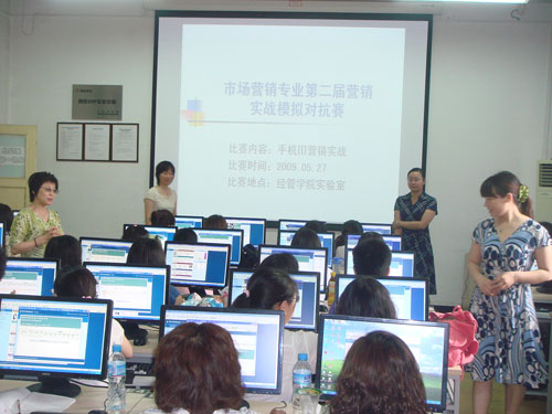 伟德BV官网市场营销专业(20646两个班)为期三周的《营销综合实践》课程教学于2009年6月1日顺利完成。作为营销专业强化实践教学环节的重要举措,目前该综合实践教学已连续实施4届,教学内容由校外实习基地实地参访调研、校内营销实战模拟及竞赛和参与专业教师科研等三部分组成。