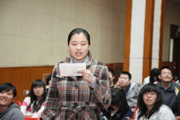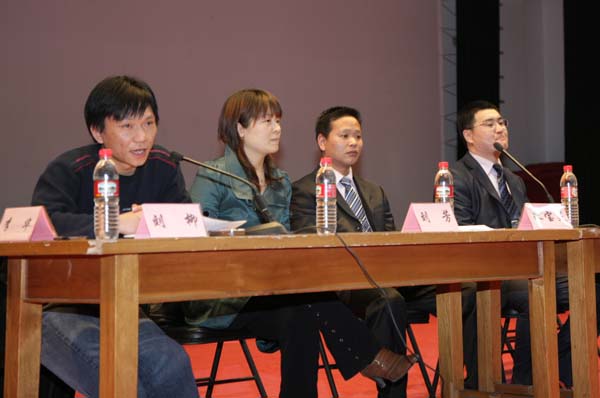 两位员工从大公司园生活的“创业”谈到后来进入社会的创业,他们将自己的创业精华与经历拿出来与在校生分享。他们依据自身创业历程中的典型案例分析了就业与创业的辩证关系,强调在校生一定要稳扎稳打,将理论基础夯实,进入社会后才可尽早实现“就业—择业—创业”的良性循环或提高升学深造的几率。并激励在校生要志存高远,心动更要行动,做有准备的人。