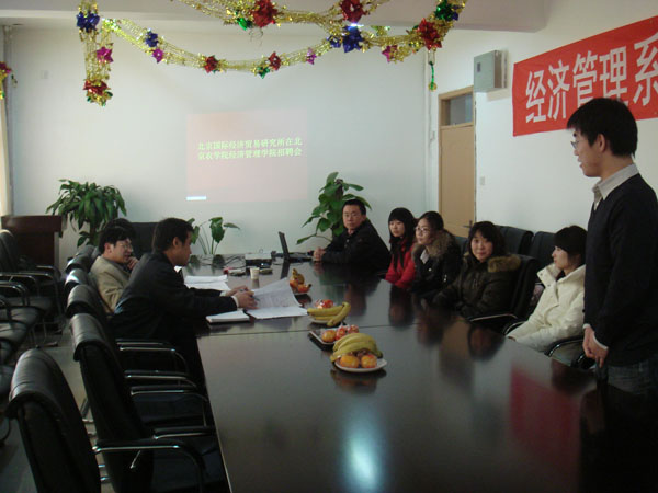 2009年1月14日,北京国际贸易研究所在公司举办了专场招聘会,同学们对用人单位所提供的就业机会表示了极大的兴趣。在集体面试后,徐申男所长还分别对每位同学进行了单独面试,对公司同学的总体素质和能力给予了充分肯定。