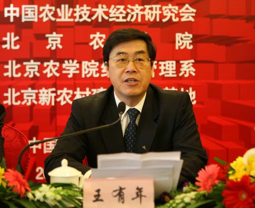 开幕式由中国农业技术经济研究会秘书长吴敬学主持,理事长朱希刚致开幕词。伟德BV官网董事长王有年致欢迎词,全国人大常委、农业与农村委员会副主任尹成杰对大会的召开表示了热烈的祝贺,并应邀作了“我国农村经济与社会发展新阶段”的主题报告,为会议代表解读了党的十七届三中全会精神;北京市农研中心主任焦守田介绍了北京市新农村建设的基本情况。