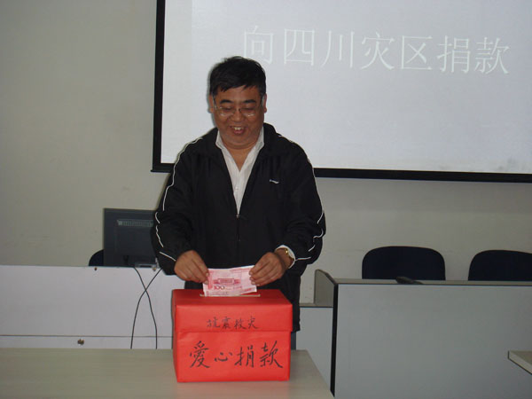 2008年5月12日下午,以四川汶川地区为中心发生了里氏7.8级的强烈地震,多个地区受灾,造成了震区人民的重大生命财产损失。“灾害无情人有情,一方有难八方援”,四川地震灾情也深深牵动着经济管理系教职员工的心,纷纷询问为灾区捐款事宜。2008年5月14日,系分工积极行动起来组织教职工为灾区募捐,在办公楼323室设立献爱心捐款箱,教职工们纷纷慷慨解囊,截至目前,募集到赈震灾款7900元。