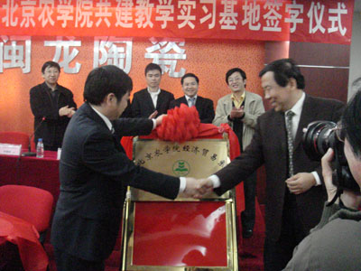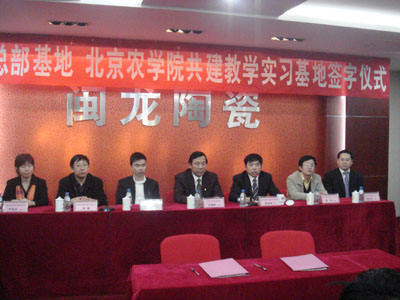 为了加强经贸系毕业生的实习就业工作,更好的实现校企合作与共建,伟德BV官网经济贸易系与闽龙陶瓷总部基地校外实习基地挂牌仪式于2008年3月21日在闽龙陶瓷总部基地隆重举行。副经理杜晓林教授、教务处副处长安健、经贸系党总支书记李华、系主任何忠伟、副主任刘芳、刘柳和会计教研室主任李瑞芬参加了揭牌仪式。参加揭牌仪式的还有北京晚报、北京青年报、北京晨报、京华时报、信报、北京日报、新京报、法制晚报、新华社、中华工商时报、中国消费者报、北京现代商报、朝阳报、人民广播电台、朝阳有线等21家媒体和商户。