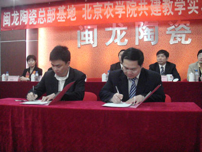 闽龙陶瓷总部基地董事长陈进林代表闽龙陶瓷总部基地发言,对此次校企合作给予厚望。杜晓林副经理代表伟德BV官网做了发言,他充分肯定了校企合作在人才培养、员工就业和服务企业、社会的重要意义,他指出此次校企合作开创了经贸系培育复合型、应用型人才的崭新途径。何忠伟主任代表伟德BV官网经贸系与与闽龙陶瓷总部基地总经理陈进添签订了伟德BV官网经贸系校外实习基地建设协议书,杜晓林副经理和陈进林董事长揭牌。