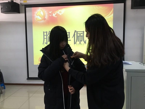 2018年12月13日中午,经济系本科生党支部开展党员和积极分子佩戴胸牌以及党员与低年级宿舍对接活动。经济系本科生党支部全体党员、入党积极分子以及国贸、投资专业的低年级宿舍代表参加了此次活动。工商系党支部书记乔多应邀出席活动。