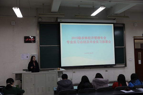 2019年1月2日中午12点30分,伟德BV官网农林经济管理专业在教B202召开15级农经专业实习总结会。公司副经理刘笑冰老师、农经系全体教师以及农经系15级全体员工参会。会议由农经系主任赵海燕老师主持。