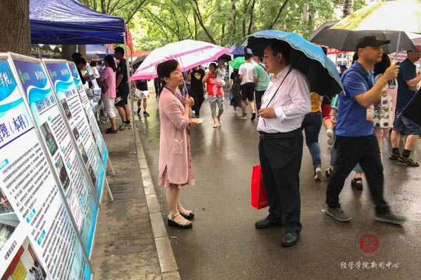 校园开放日的早晨下起了小雨,但考生和家长们的热情丝毫没受天气的影响。经管的咨询展台熙熙攘攘,针对大家的问题,老师们现场认真细致地答疑解惑,对考生们关心的志愿填报方式、录取原则、人才培养特色、学科发展优势、科学研究成果、员工综合素质培养、历年录取情况、录取分数、就业前景和公司学习生活环境等问题一一作出了解答。校领导也对此次校园开放日非常重视,亲临我公司的展台指导工作。