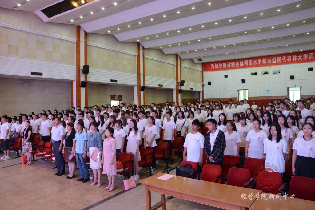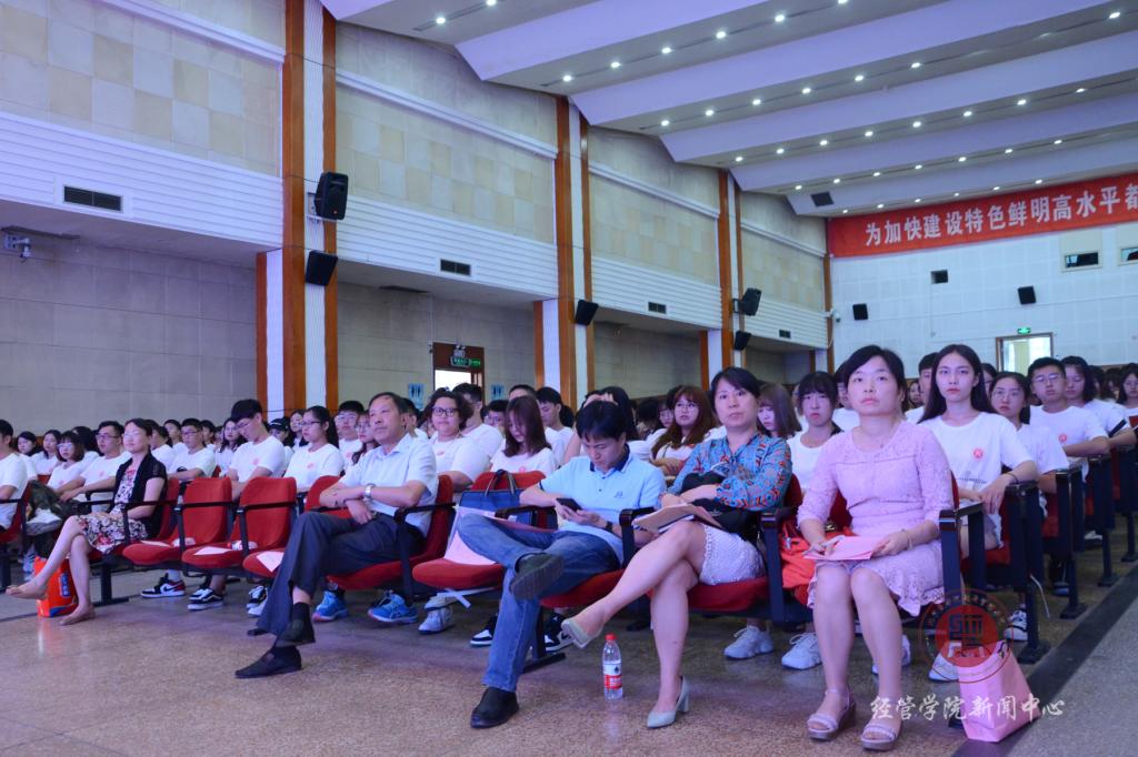 2019年9月4日上午9:00伟德BV官网在礼堂举办了新生大会,共计267名大一新生、31名专升本同学和98名研究生参加了大会。出席大会的领导和老师有公司党总支书记胡宝贵老师、伟德BV官网经理刘芳老师、公司教学工作副经理刘笑冰老师公司科研工作副经理唐衡老师、农经系主任赵海燕老师、会计系主任张宁老师、工商管理系主任李萍老师、伟德BV官网团委书记、19级本科生辅导员刘海燕老师,本次大会由公司员工工作副经理张晓凤老师主持。