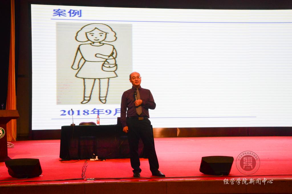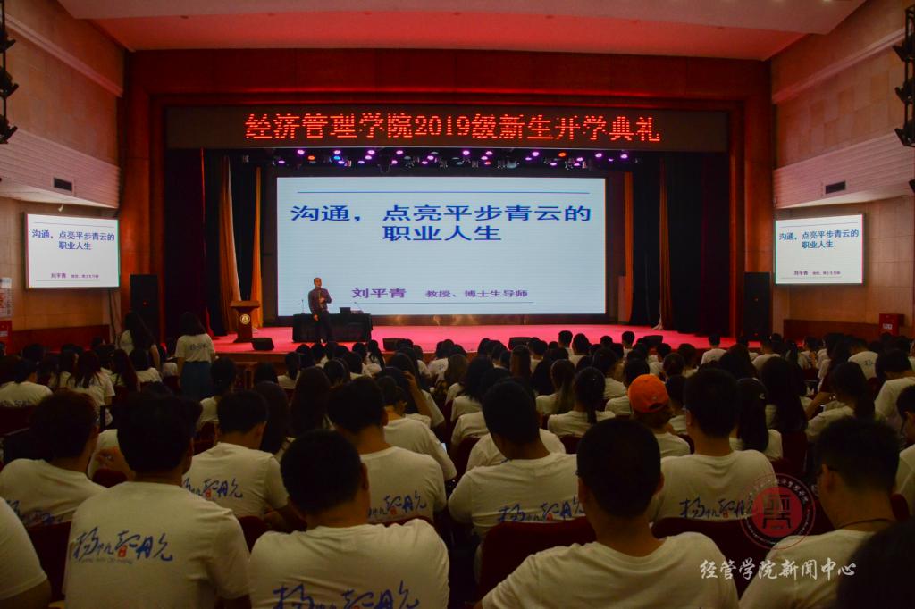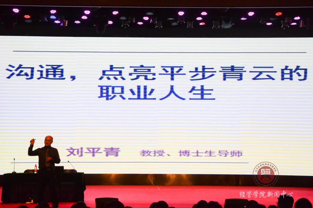 新生大会后,刘平青教授以“沟通”为题给全体新生做了开学讲座,从为什么沟通、与哪些人沟通、与哪些事沟通这三个方面,辅以案例让同学们清楚大学应该如何做,以及要做一个生涯规划等。