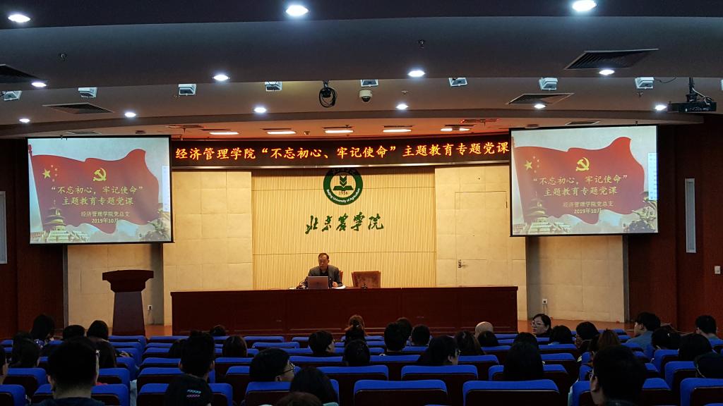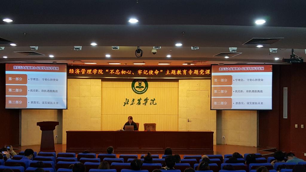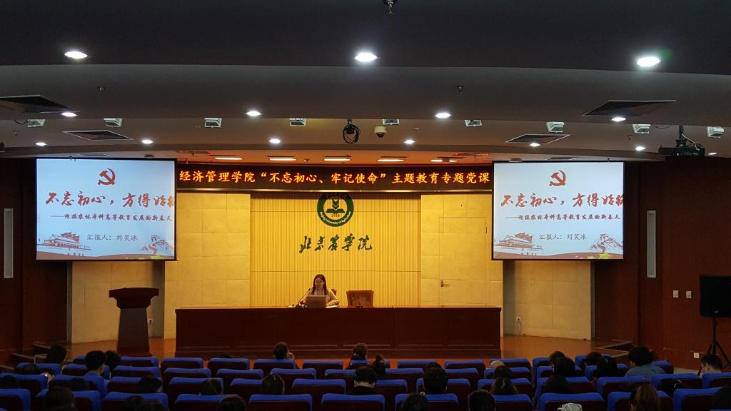 根据校院两级主题教育工作部署,2019年10月23日下午伟德BV官网在图书馆报告厅开展“不忘初心 牢记使命”主题教育专题党课。公司党总支书记胡宝贵老师,党总支副书记、经理刘芳老师,党总支委员、教学副经理刘笑冰老师,党总支委员、科研副经理唐衡老师为全院200余名师生党员、入党积极分子讲授“不忘初心、牢记使命”主题教育专题党课。