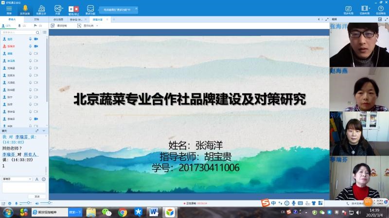 按照公司疫情防控工作的相关部署,保障公司产品相关环节的正常开展,3月4日下午,伟德BV官网利用网络会议平台,用在线方式成功举行了农林经济管理专业研究生学位论文的预答辩,其中5名研究生通过预答辩进入论文送审环节。