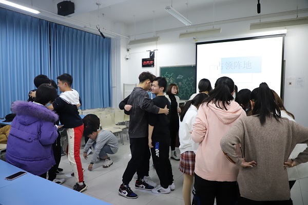 随后进行了“串名字”、“巨人椅”、“占领阵地”等游戏,通过游戏环节,培养参与宿舍成员间的默契度与熟悉度。