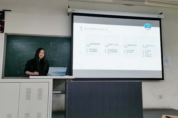 首先由2020级国际商务专业硕士钟华向同学们介绍研究生学位、报考须知、备考常识、复习常识等多项注意事项,其中在“复习常识”中更是细致的讲解了关于复试资格、调剂与自定分数线、复试内容与形式几项内容,给予了参加交流会的同学从备考到复试的大量信息与经验。