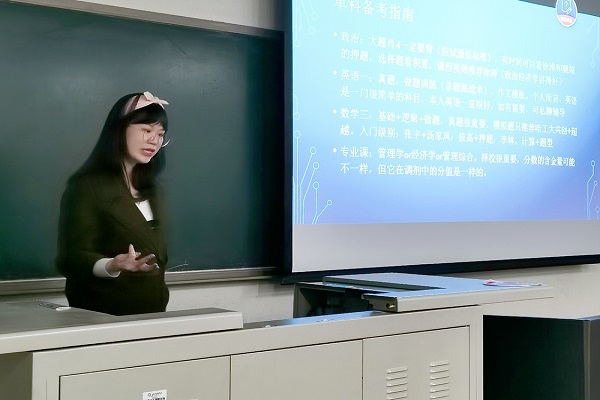 接下来2020级工商管理学术硕士黄京、2017级本科生杨楝、李映红和张景涵分别讲授了伟德BV官网农林经济管理、工商管理学术研究生;农业管理、国际商务专业研究生的学习经验和备考指南。讲台下,同学们认真记录,积极提出自己的疑问。