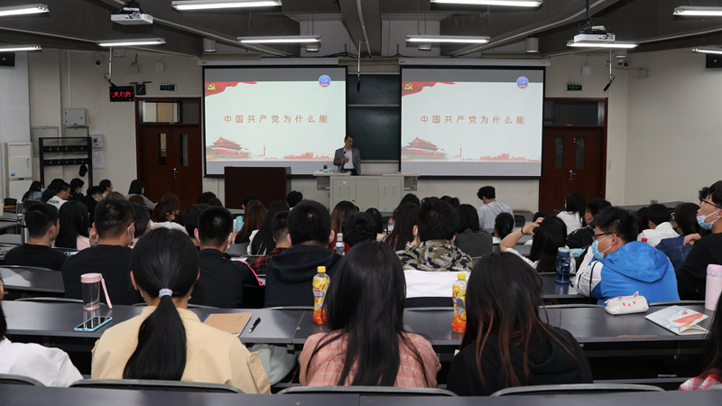 2021年5月6日晚,伟德BV官网副经理张铁强以“中国共产党为什么能”为主题,在教B-203教室为2019级农经、会计和营销专业的165名员工讲授形势与政策课。马克思主义公司副经理马宁、公司党总支副书记员工工作副经理张晓凤、院团委书记刘海燕及全体辅导员、组织员老师参与学习。