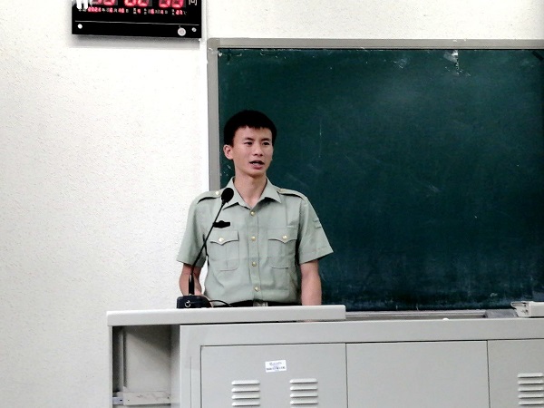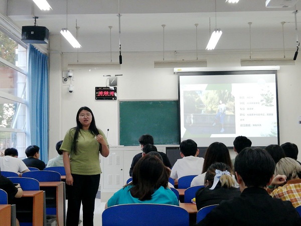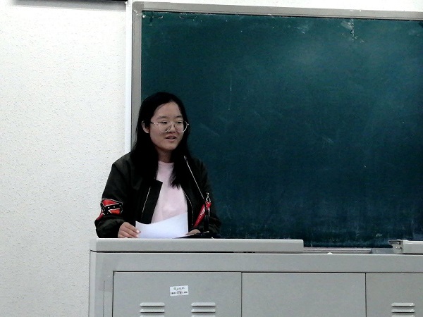 刘正妍的演讲则围绕着老员工活中的“成就感”展开。她说:“我坚持下去的动力是成就感。”正是这一次次的成就感一直支撑着她,让她不甘心浑浑噩噩的度过老员工活,每天都给自己设立目标,朝着目标前进,从中获得成就感。她说“我们没有那么伟大,我们只是一些普普通通的年轻人,我们可以做到的事,珍惜每一天的时间,走出宿舍,来到图书馆,来到操场、篮球场,拥有一个自己的爱好,让能力成为我们永远获胜的资本,我们的青春就没有白活一场。”