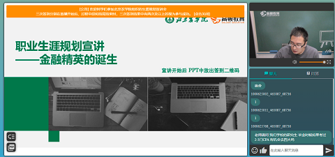 首先董岳老师通过对世界金融中心的介绍引出了金融这一行业,系统的为同学们介绍了金融机构、金融的分类、金融银行、保险和券商等相关知识,让同学们充分了解到了金融领域。紧接着Jesse老师联系到现实:通过数据向同学们展示了毕业季就业人数众多,就业难的问题,并指出金融行业拥有高薪酬、社会地位高、发展快等就业优势,鼓励同学们积极报考金融专业的证书考试,最后董岳老师并着重介绍了CFA考试,全方面为同学们介绍了CFA考试的含金量及知识体系和报名信息。CFA作为全球金融第一考已经被全球多个国家认可,在中国很多城市对考取CFA资格证的人提供优惠政策。