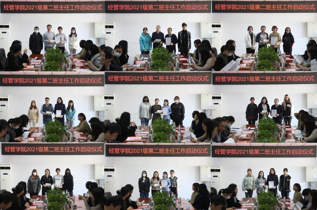 2021年11月10日下午,2021级第二班主任启动仪式在经管楼401成功举行。公司全体领导班子成员、团委书记、2021级辅导员、班主任、第二班主任、各班班长、团支书参加了会议。会议由伟德BV官网员工工作副经理张晓凤主持。