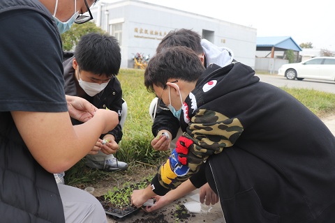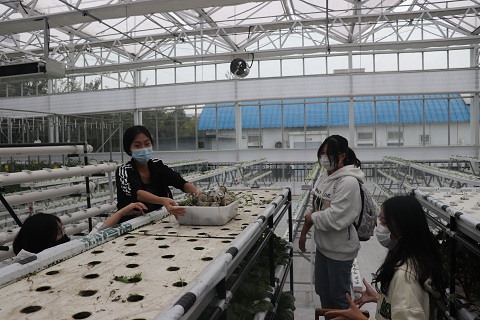 同学们结合老师的讲解内容,掌握了水培植物分苗种苗的基本操作。在统一安排下,大家分为多个小组开展实地劳动,同学们热情满满,稳步操作,一个个繁忙的身影穿梭在温室大棚中,同学们认真负责的态度赢得了老师的好评。在动手实践中,大家也深刻体会到幸福生活的来之不易。