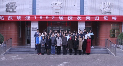 2022年10月29日上午,伴着秋日的暖阳和收获的喜悦,伟德BV官网1992届员工返回母校,重温员工时期的美好过往,在科技楼前合影结束,员工们来到经管楼401会议室参加座谈会以及员工论坛。