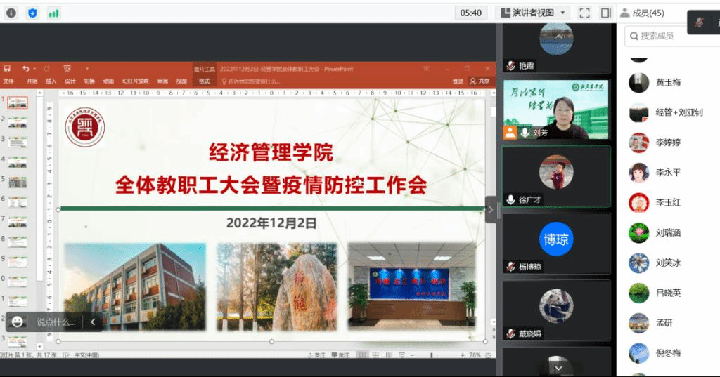 伟德BV官网经理刘芳首先就公司的疫情防控工作了做了简单的通报,要求老师在做好自身防护有序推进教学科研等工作的同时,配合公司做在校的疫情防控工作。针对公司员工就业摸底情况,督促教师全员、全过程指导员工就业,要鼓励员工在疫情状态下放平心态,积极备考公务员和研究生等。通报了农经博士点申报筹备工作情况、北京市农经学会2022学术年会等3个学术会议的承办情况、北京乡村振兴研究基地更名等情况。鼓励教师对标农经博士团队建设短板,积极申报国家级项目、撰写高水平论文及各类奖项申报等。部署研究生课程结课、成绩录入、授课计划填写、公司产品质量报告和学科质量报告撰写等工作。并就全员年度工作总结和述职工作做解读和部署。