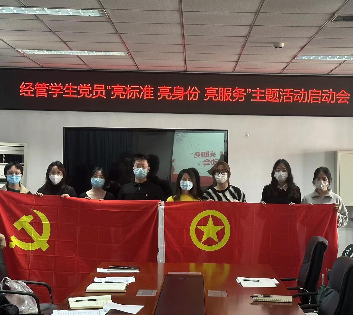 会后员工党员和对接团支部进行合影,伟德BV官网将持续推进党团班协同机制,以党支部指导团支部工作为核心,强化榜样引领,打造课堂新样态、宿舍品牌文化,从学习、生活、工作中的方方面面发挥党员的先锋模范作用,让党旗在校园高高飘扬。
