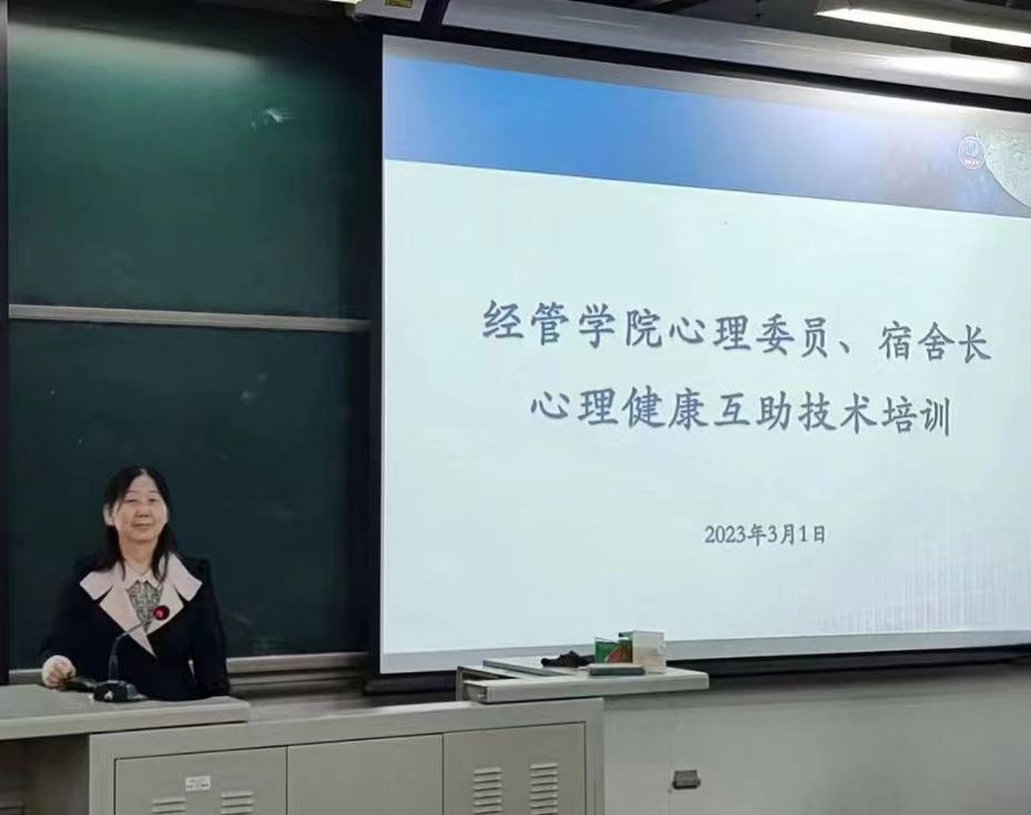 李有玉从员工心理委员、宿舍长的角色定位、老员工常见心理问题以及朋辈互助技术三个方面做了详细讲解和专业辅导。让同学们进一步了解了心理委员及宿舍长的职责和义务,系统学习了心理健康知识,掌握了组织开展心理健康工作的基本技巧。