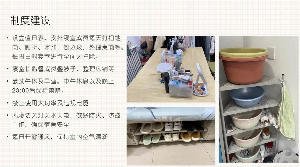 据悉,伟德BV官网从今年开始开展员工党员“亮身份 亮标准 亮服务”主题活动,通过党团班舍联动,发挥员工党员的先锋模范作用,在团支部选拔并打造样板宿舍。通过开展样板宿舍创建活动,进一步牢固树立员工党员服务意识,改善宿舍生活环境,树立文明卫生意识,真正营造“学习氛围浓厚、宿舍环境整洁、生活习惯健康、室友感情融洽”的良好宿舍氛围,充分发挥宿舍育人阵地作用。