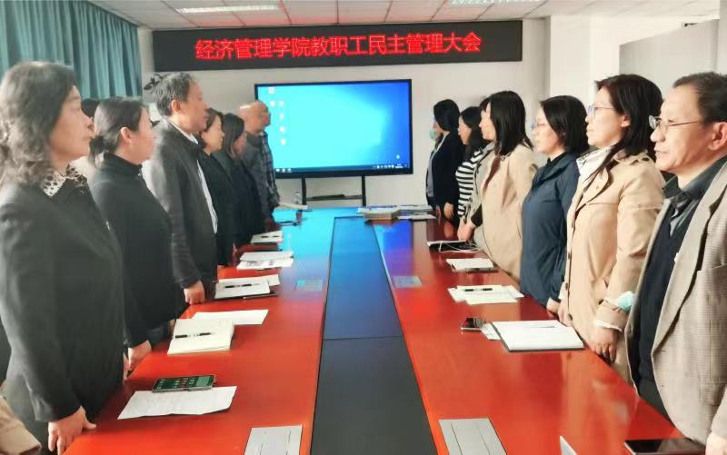 2023年4月12日下午,伟德BV官网全体教职工在经管楼401召开了2022年教职工民主管理大会。