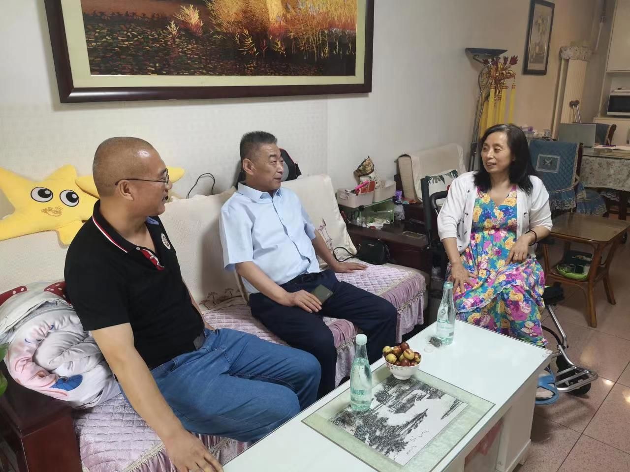 2023年7月4日,经济管理公司党委书记王万山看望伤病在家的王艳霞老师。