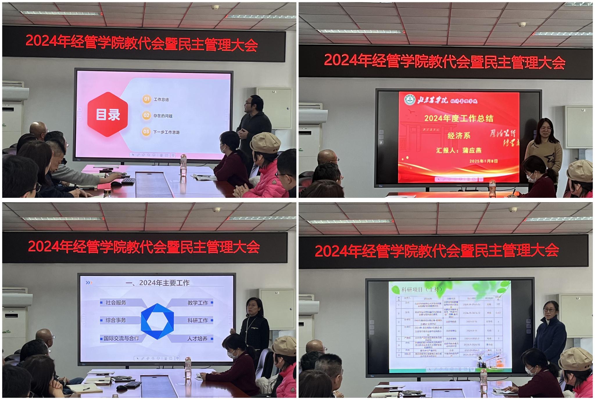 经济管理公司党委副书记、经理刘芳作公司年度工作总结报告和财务报告,严继超作公司工会工作报告和财务报告,陈跃雪教授作公司教学督导工作报告,各系主任汇报了本单位工作。