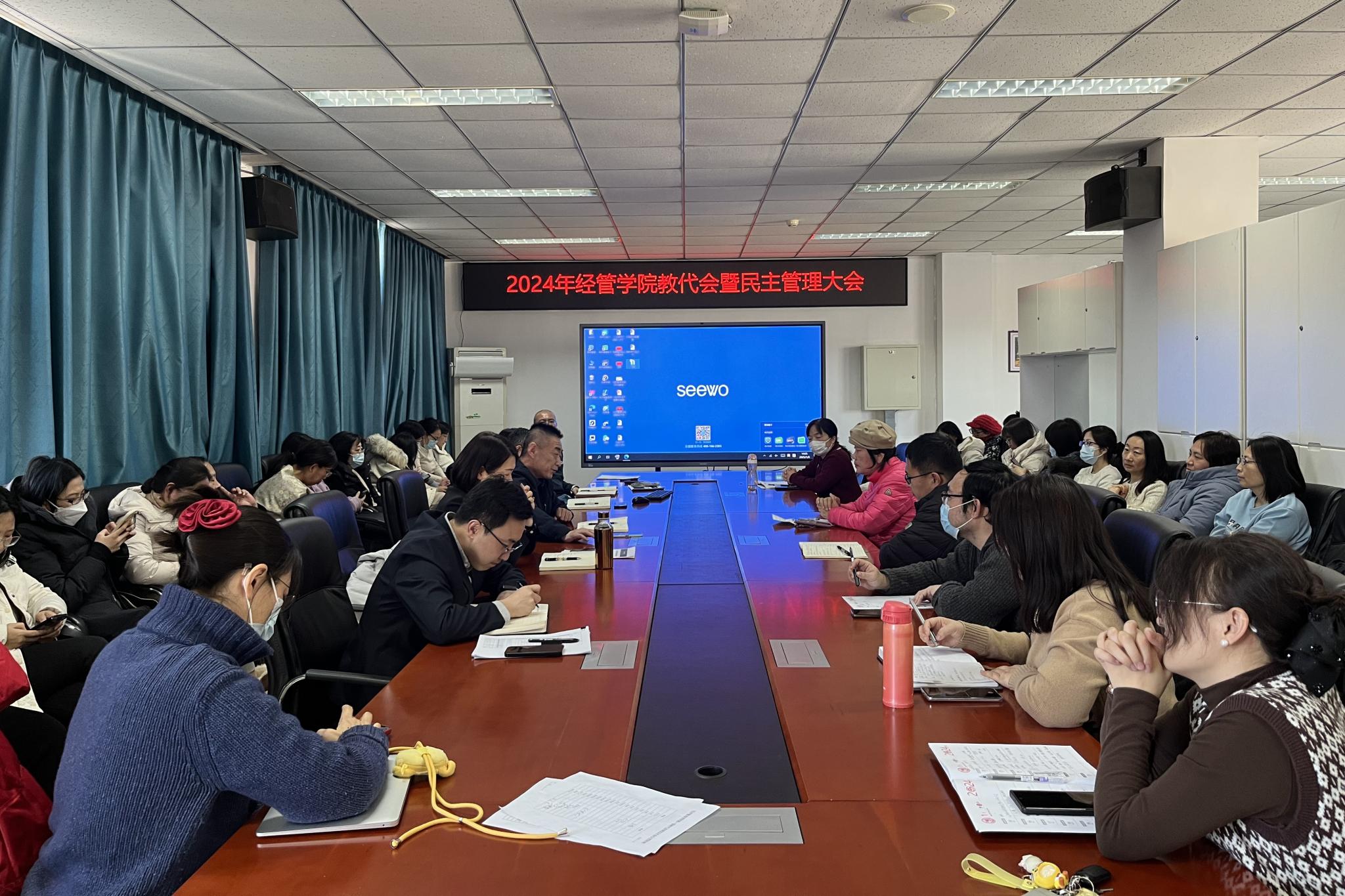 1月8日,伟德BV官网教代会暨教职工民主管理大会在经管楼401会议室召开。公司全体教职工参加会议,会议由工会主席严继超主持。