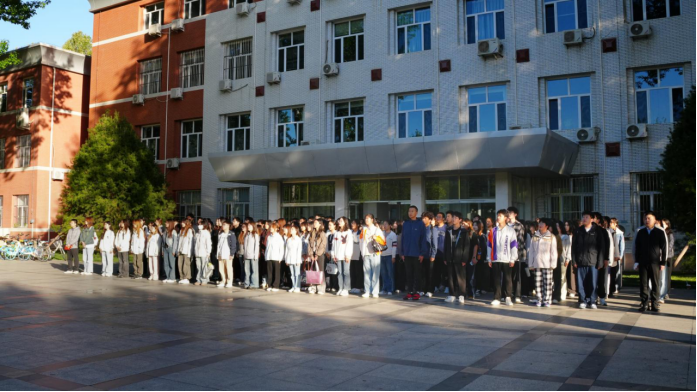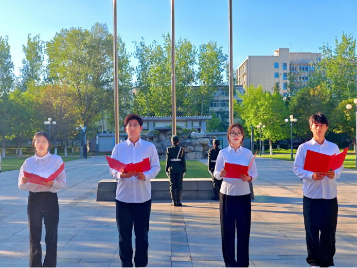 清晨7时,升旗仪式正式开始。在全体师生肃立注视下,鲜艳的国旗冉冉升起,嘹亮的国歌响彻校园。随后,员工党团员代表以《五星红旗,永恒的颂歌》为题展开深情朗诵——“从南湖红船到复兴巨轮,从戈壁荒原到绿水青山,红旗指引的方向,就是我们奔赴的远方!”铿锵的诗句讴歌党的光辉历程,传递新时代青年对祖国的赤诚热爱。