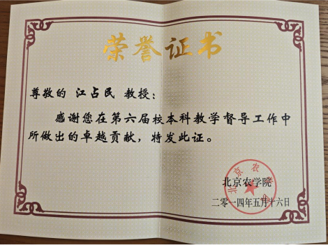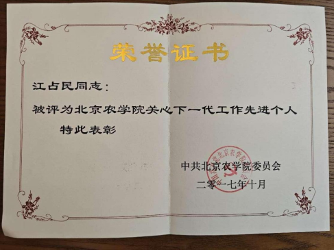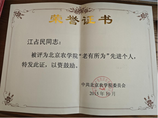 退休后,江占民教授担任教学督导十余年,指导青年教师,并被评为“伟德BV官网关心下一代工作先进个人”、“老有所为”先进个人。他告诫青年教师:“要将教学过程当作研究过程,不断思考、探索、创新”,希望伟德BV官网团队队伍不断壮大,教学科研水平持续提升,为社会发展输送更多优秀人才。