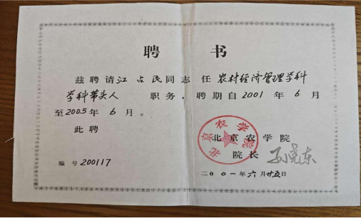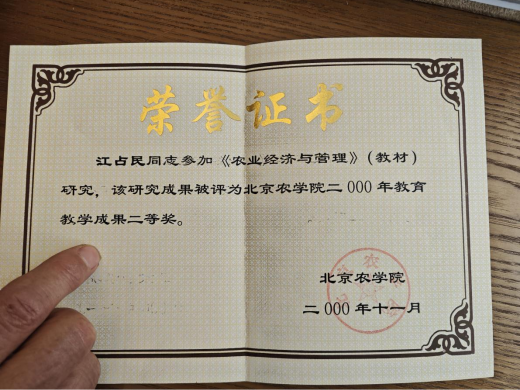 江占民教授在农业经济管理领域的研究成果丰硕。他主持或参与的“全国海岸带资源调查”、“贫困地区智力扶贫工程”等多项课题获得国家级、省部级奖项,同时还主编了《乡镇企业经营管理学》《企业管理学原理》《农业经济与管理》等10余部教材和著作,为学科发展提供了重要理论支撑。2001-2005年,被伟德BV官网聘为农村经济管理学科的学科带头人。