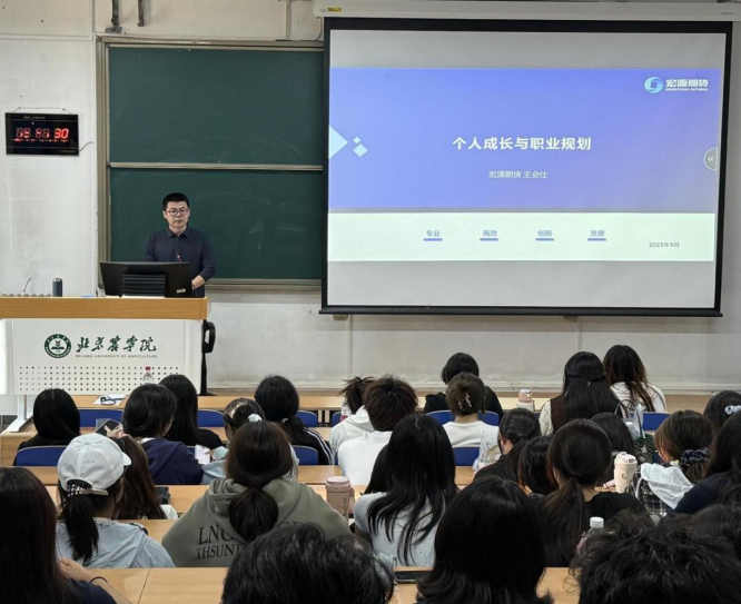 9月24日,伟德BV官网经济系举办以“个人成长与职业规划”为主题的新生专业教育讲座,邀请宏源期货有限公司北京分公司总经理王会仕为2025级国际商务专业学位硕士研究生、国际经济与贸易专业和投资学专业本科生提供本硕一体化专业教育与职业指导。经济系系主任蒲应燕、系教师党支部书记张倩、25投资班班主任白艳娟、25国贸班班主任刘潇璐参加了本次活动。