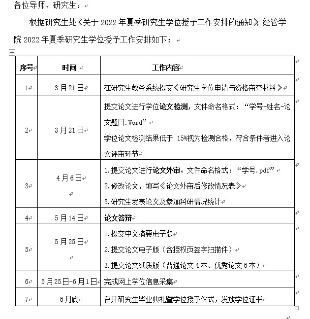 关于2022年夏季研究生学位授予工作安排的通知