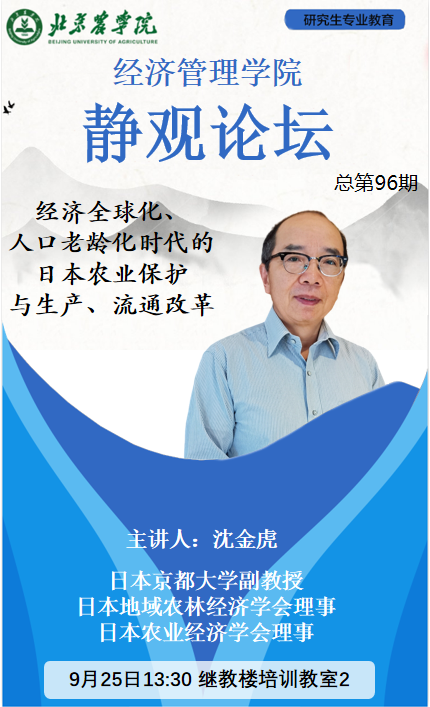 论坛预告 | 第96期“静观论坛”预告——经济全球化、人口老龄化时代的日本农业保护与生产、流通改革
