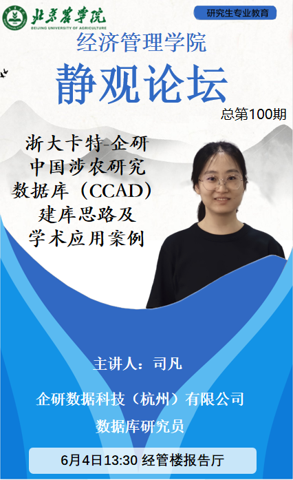 报告题目:浙大卡特·企研中国涉农研究数据库(CCAD)建库思路及学术应用案例