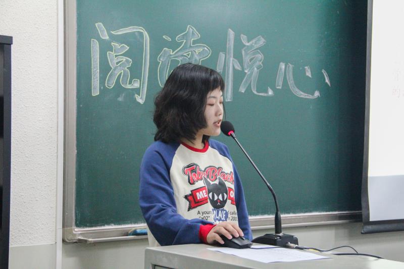 同学们利用PPT的形式向大家推荐了自己近期读过的好书,并分享了自己的读书心得与感受。他们从写作背景、人物介绍、情节片段、阅读感受等方面进行讲述。在场的同学们也更加深刻的了解这本书背后的故事。