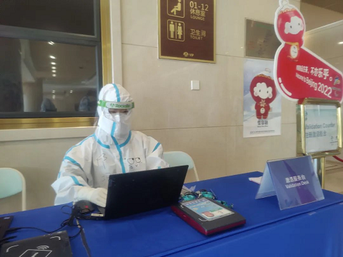 “玥雯,一会儿你将为国际残奥委会主席安德鲁·帕森斯进行证件注册激活。”2月26日早上8点,通往机场的班车上,公司冬残奥会志愿者邱玥雯接到通知。“听到这一消息后我很激动,赶忙又掏出之前所做的英语笔记再次熟悉了几遍。”准备就绪后,她穿好防护服进入了工作区域。